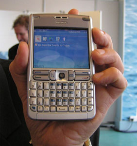 PDAライクなE61は、Nokiaには珍しいフォームファクターで、同社が「Blackberry」や「Treo」を意識していることが分かる。同社では「スマートフォンで培った技術力、複数の無線技術をサポートできる点、電子メールクライアントなどユーザーが好みのソリューションを選択できる点で差別化できる」としている。無線間のハンドオーバーについては、アプリケーションではほぼ問題ないだろうと述べている。