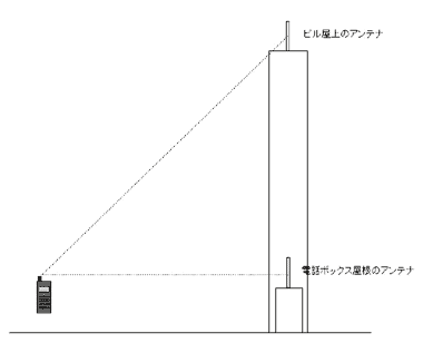 PHSの場合、携帯電話などよりもさらに小さい「マイクロセル」と呼ばれるサイズのセルを使います。サイズとしては100〜数100メートル程度になります(3月15日の記事参照)。また、携帯電話の基地局アンテナがビルの屋上などの高いところに設置されるのに対して、PHSのセルは、電柱や公衆電話の屋根などのあまり高くないところに設置されます。セル範囲が小さいため、高いところに立てるのはあまり有利ではないからです。