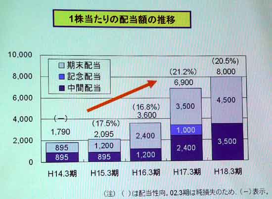 3月15日、KDDIの小野寺正社長は定例会見を行い、1株あたりの期末配当予想を1000円増配し、4500円とした。中間配当金の3500円と合わせ、年間配当金は8000円となる。増配の理由について、小野寺氏は「携帯電話事業が好調で、業績が順調に推移している」と説明した。