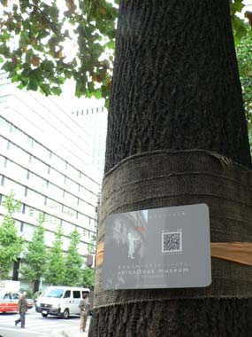 丸の内ユビキタスミュージアムは、丸の内で行われている地域情報案内サイト(http://tokyo-dmy.jp/)。丸の内界隈の樹木や建物などに設置されている、QRコードと影絵の女の子が描かれたプレートと連動している