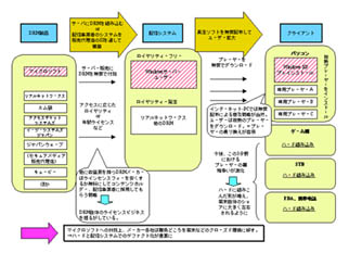 DRMの仕組み最近では,デジタルコンテンツの著作権管理技術を総称してDRM(Digital Rights Management)と呼んでいるようだが,ここではより狭義の,コンテンツを暗号化して送信するシステムをDRMとして話を進めていきたい。 DRMでは,ユーザーの要求によって暗号化したコンテンツを送信し,決済処理が終了したあとで復号用の暗号鍵を送信する。複合鍵の中に書き込まれたユーザーのPC固有の情報と,再生するPCの情報が一致して初めて復号できる。 製品としては,マイクロソフトの「Windows Media Technology」(WMT)や,リアルネットワークスの「Media Commerce Suite」に含まれるDRMが有名だが,ほかにエム研の「clavispac」やイージーシステムズジャパン(米InterTrustのDRMをカスタマイズ),米SecureMediaなどのDRM製品がある。 ただし,現状のDRM対応配信サービスでは,Windows Media Technologyを採用していることが多い。理由としては,リリースが早かったことや,再生用の「Windows Media Player」が普及していること,(サーバで儲けるビジネスのため)DRM自体のロイヤリティを徴収しないこと,コンテンツ制作支援ツールが充実していること,などが挙げられる。 一方,マイクロソフト以外のDRMメーカーの場合は,独自技術を配信事業者に売り込み,ライセンス料を徴収するビジネスモデルだ。配信事業者が採用する判断基準は,価格,プレーヤーの頒布数,DRMの機能などだが,プレーヤーの頒布数ではマイクロソフトやリアルネットワークスにはかなわないため,市場は独自プレーヤーを持ちたい事業者などに限られてしまう。 リアルネットワークスは,プレーヤーの普及という点では問題ないが,ライセンス料が発生するのがネックだ。マイクロソフトは,OSにプレーヤーをバンドルすることで,ますます強くなっていく。 結局,PC上での争いはすでにマイクロソフトの優位性を覆せないものとなっているため,日本のメーカーは,ゲーム機,STB,PDA,携帯電話といった情報家電分野に狙いを定めている。ソニー・コンピュータエンタテインメント(SCEI)は「Playstation 2」をプラットフォームとするコンテンツ配信ビジネスにおいて,独自の認証システム「DNAS」を発表。プレステ2向けに配信したければ,ゲームメーカーはこれに対応せざるを得ないという意味で,DNASは絶対的な優位性を持っている。 DRM規格を普及させるためには,結局,ほかのコア商品を持っていることが重要になる。どの部分でユーザーを確保できるのかが,自社規格の普及を大きく左右するわけだ。