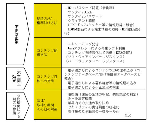 コンテンツの有料配信ビジネスで重要になるのが著作権保護対策だ。対策としては,「不正コピーができない」仕組みを整えることが大前提だが,現在はユーザー認証とコンテンツの配信方法の両面からのアプローチで,実質的な不正コピー防止が図られている。 まず,「不正への抑止効果」を狙うものとしては,コンテンツ自体にIDや著作権情報を埋め込み,不正検出を可能にするという方法の導入が進んでいる。例えば,コンテンツIDフォーラムは全コンテンツ共通の「コンテンツID」を付け,電子透かしを入れることを提唱した。(2001年12月の記事を参照)。ただし,コンテンツIDに関しては,既に独自のIDを利用している企業などにシステムを変更する必要が生じるため,業界が一致団結するのは難しいという側面もある。 現在の有料配信では,ID/パスワードで認証することが多い。しかし,IDやパスワードを会員が他人に教える危険性もあり,迂回してコンテンツサーバにアクセスすることも不可能ではない。またストリーミングであっても,データを録画してしまうソフトも存在し,不正アクセス,不正コピーの防止策としては万全ではない。こうした懸念から,コンテンツを暗号化して送信する仕組みを持つDRM製品が注目を集めるようになっている。