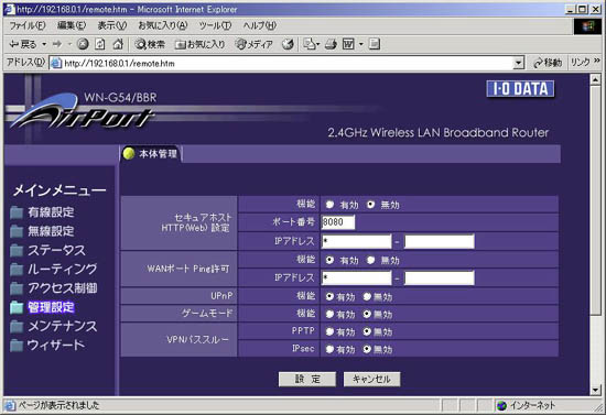“WANポートに対するPing拒否”は、ポートスキャンなどをされずに済むように、いわば、こちらの存在を消してしまうというもの。一方、“セキュアホスト機能”は、外部から「WN-G54/BBR」を設定することができるPCを制限する機能だ
