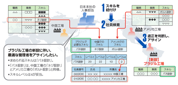 しかし、先に述べたとおり企業の海外事業戦略の転換が進むにつれ、従来型の人材管理では対応できない、という課題が顕在化してきました。生産や販売だけでなく、研究開発、製品設計、サービスなど、さまざまな戦略的機能が海外拠点に移管されるようになり、それぞれの役割に応じた専門性や経験、資質を備えた人材の配置が、事業の成否を握るようになっています。また、特に市場環境が複雑なアジアを中心として、各国市場に応じた人材配置の必要性が高まっています。例えば、タイの新設拠点の責任者を登用するにあたり、アジア全域の拠点からふさわしい人材を探し出し必要な教育を施すといった判断を、的確かつスピーディに行える仕組みの構築が、喫緊の課題となってきているのです。