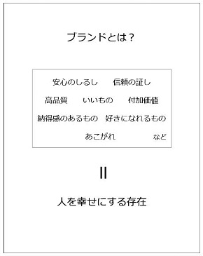 つまり「ブランド」とは、“人を幸せにする存在”なのです。単に商標やデザイン、商品といったものの名称ではなく、人々の心に何を生み出すのかというところにこそ「ブランド」の本質があると私は思っています。関わるあらゆる人々に、幸せになってもらってこそ、「ブランド」なのです。そのブランドを享受する側の人だけでなく、提供する側にとっても“幸せにする存在”が、ブランドになり得るのです。