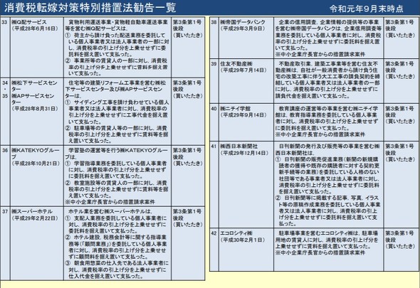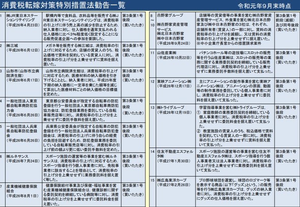 10月の増税からまだ期間も短いため、増税後に新たなに出た違反のケースについては「まだこれから」だという。例年通りアンケートを行い、年末年始ごろから調査や指導が本格化するとの見込みだ。
