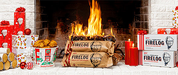 リサイクル素材の段ボールを使用した薪を製造する大手企業の「Enviro-Log」とKFCが共同で開発した、そのフライドチキンの香りがする薪は、限定商品としてWalmart.comのみで販売される(参照リンク)。