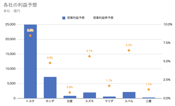 各社の通期営業利益予測