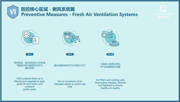 ガイドラインのアップデートに関しては、各国行政機関や専門機関の知見を反映しています。ゲンティンクルーズラインのグループ企業の1つであるスタークルーズでは、4月からシンガポール政府の要請に応えて、外国人労働者(注:シンガポールでは3月初旬からCOVID-19感染者数が急増しており、その多くがシンガポール国外からの外国人労働者が占めている)のCOVID-19治療回復者を健康観察する施設として2隻のクルーズ客船(SuperStar GeminiとSuperStar Aquariust)を提供しています。2隻合わせて3000人近くを受け入れたと聞いています。この受け入れにおいて、政府当局監修のもと、船内に感染防止環境や新しい換気システムを導入し、乗員も保健省から食事の提供方法など感染防止策の訓練を受けています。