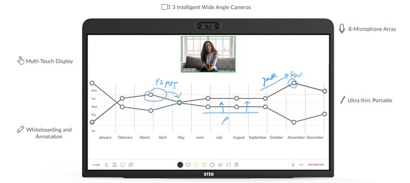 開発したのはパートナー企業のDTEN。幅616ミリ、高さ391ミリ、厚み104ミリ、重さは6.5キログラムとなっている。HDMI入力端子も備え、PCのディスプレイとしても利用できる。