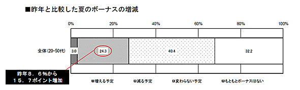 新型コロナウイルスの感染拡大を受けて、多くの企業が業績に悪影響を与えているが、夏のボーナスは前年と比べてどのような状況なのだろうか。全国の20〜50代の男女に聞いたところ、昨年より「増える」と答えたのは3.0%にとどまった一方、「減る予定」は24.3%に達していることが、明治安田生命保険の調査で分かった。