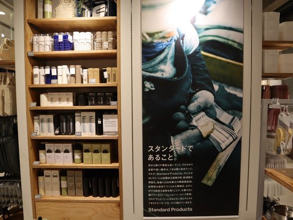 新たな競合も育とうとしている。大創産業は3月26日、中心価格帯が300円(税別)の新業態「Standard Products by DAISO(スタンダードプロダクツ バイ ダイソー)」を東京・渋谷にオープンした。オーガニックコットンを使った「フェイスタオル・ハンドタオル」(2枚組で300円)や、新潟県燕市製のナイフやフォーク(2本組で300円)などを扱う。大創産業は今後、100円ショップ、女性向け300円ショップに次ぐ第3の柱として育成する計画だ。同店舗はオープン時にお客が殺到したため、入場制限を実施した。また、一部商品に欠品が生じたため、おわび文を公表することになった。店舗コンセプトや品ぞろえでは無印良品と似ている面があり、生活雑貨を豊富に扱っていることから、価格面で脅威になりうる。