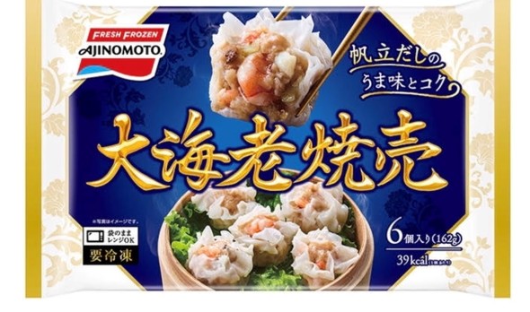 そこで、21年2月14日に新商品「大海老焼売」を投入。ジューシーな豚肉に大ぶりのえびがゴロっと入り、コクが深くて海鮮のうまみがきいており、上品でやさしい味わいが特徴だ。えびの他にも、いか、しいたけ、たまねぎなどの素材を加え、ホタテだしのうまみが素材の味を引き立てている。