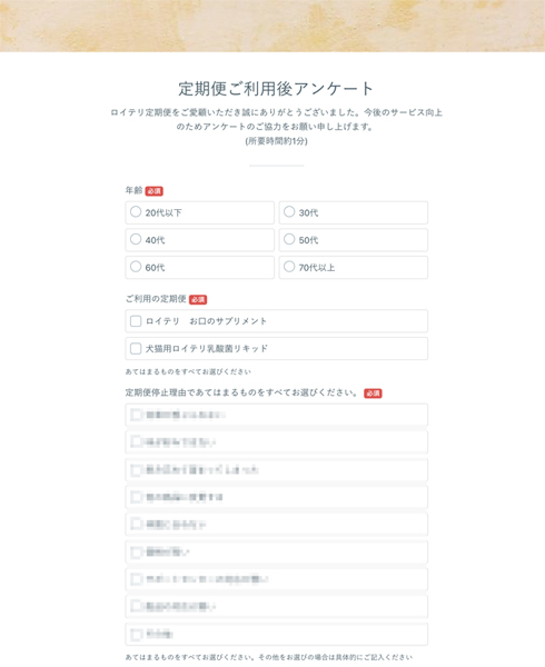 また、解約の手続きをカスタマーサポートに依頼した消費者には、後から解約手続き完了のお知らせとともに、formrunで作成した利用後アンケートのリンクをメールで送付している。