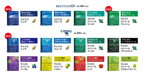 あわせて同社は、プルーム・エックス用たばこステックとして、「メビウス・リッチ」「メビウス・メンソール・フレッシュ」(いずれも540円)、「キャメル・リッチ」(500円)の3銘柄を発売すると発表した。