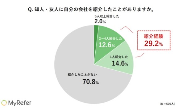 実際に知人・友人に紹介したことがある人は29.2%で、最も多かったのは「1人紹介した」で14.6%、次いで「2〜4人紹介した」が12.6%、「5人以上紹介した」が2.0%だった。