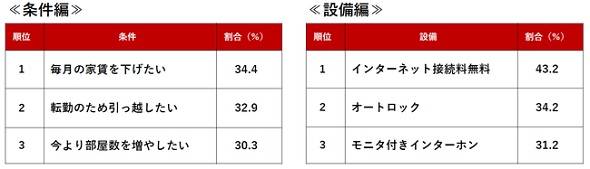 また、問い合わせが多かった・人気のあった設備1位は「インターネット接続料無料」(43.2%)。個人で契約をしなくてもインターネット回線を無料で利用できるため、コロナ禍でオンライン授業やテレワークを実施する人から支持を集めた。