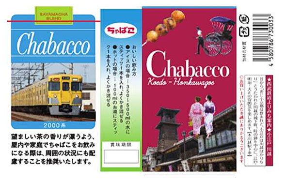 パッケージデザインは、通常版と特別版が用意されている。所沢駅は、通常版が西武鉄道40000系(裏は「日本の航空発祥の地」といわれる所沢の茶畑を飛ぶ飛行機)。特別版が西武鉄道10000系(レッドアロークラシック)のデザインで、限定2000個。設置場所は改札内・南改札付近。