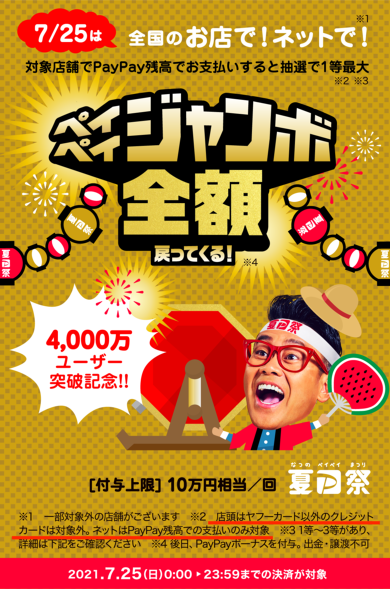 現金チャージの場合は振込手数料のみのため、PayPay側の負担は比較的低い。一方で、クレジットカードを支払いのソースに設定された場合は毎回一定額の決済手数料を徴収されるため、必然的に利益率が低くなる。この利益率を可視化する最も分かりやすい例が「PayPayジャンボ」などの大規模還元キャンペーンで、直近の21年7月25日に実施されたキャンペーンにおいては、店頭での支払いはヤフーカード以外のクレジットカードの利用は対象外、ネットはPayPay残高のみ対応との但し書きがある。ネットの方が制限が厳しいのは、前段の説明にもあるようにインターネットにおける決済手数料が高めに設定されていることに由来する。
