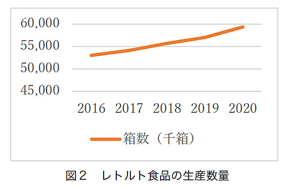 日本缶詰びん詰レトルト食品協会のデータを見ると、巣ごもり需要としてレトルトが売れている。過去5年間の生産数も上昇傾向にあるので、佐藤さんは「これはいけるかも!」と感じ、商品開発に向けて一歩進み出したのだ。