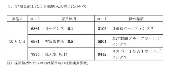 今回採用された任天堂とキーエンスは0.1、村田製作所は0.8の株価換算係数が掛けられることになり、指数の中では値がさ株としての存在感はなくなる。