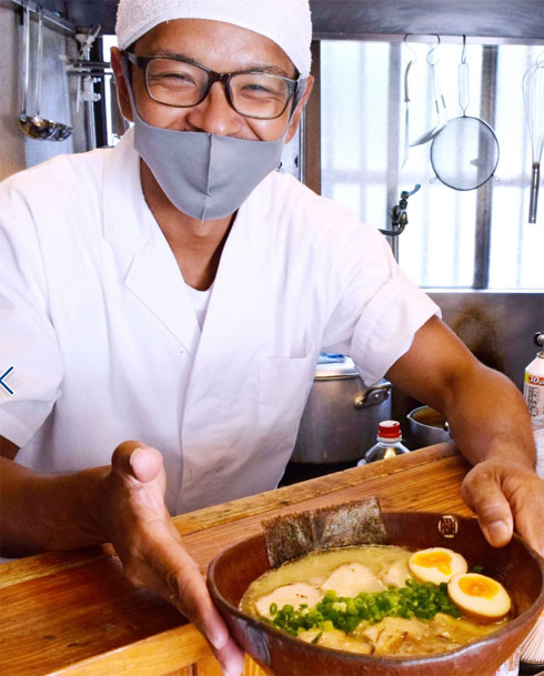 ロビーさんは10歳のころ、フィリピンから沖縄在住の祖母を頼って家族で来沖。2015年にそば店「いしぐふー」ののれん分けで、ラーメン店として開業した。緊急事態宣言中はテークアウトのみで火〜金曜日の午前11時〜午後2時に営業している。