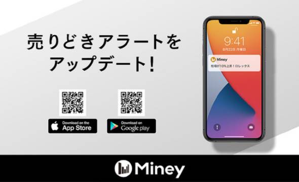 アプリ開発を行うバリュエンスジャパン(東京都港区)は9月22日、運営するグループ企業バリュエンステクノロジーズ(東京都港区)が提供する実物資産管理アプリ「Miney」(マイニー)において、売りどきアラート機能をアップデートしたと発表した。