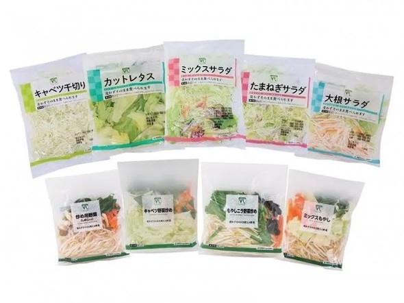 例えば、カット野菜は定番のベストセラーだが、天候不順で野菜の価格が高騰した9月には特によく売れた。「VL ざく切り白菜(220g)」が前月比119%、「VL さく切りキャベツ(220g)」が同116%、「VL カットレタス(105g)」が同131%、などとなった。