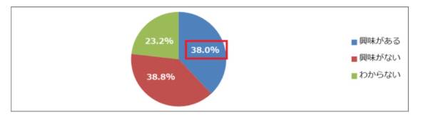 電子署名サービスを「導入していない」と回答した人を対象に、興味があるか尋ねると「ある」と38.0%が回答し、「ない」と回答した人は38.8%となった。