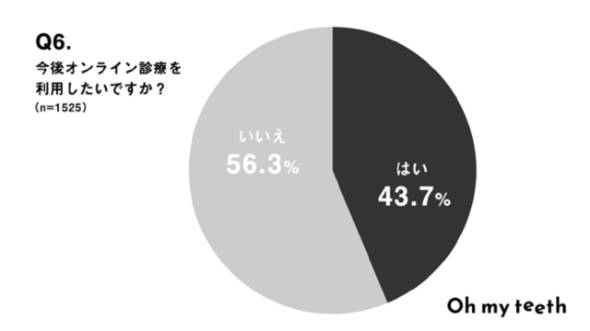今後オンライン診療を利用したいかの質問では、56.3%が「オンライン診療を利用したくない」と回答した。「直接診てもらえた方が安心する」「かかりつけ医が未対応」「割高の印象」などが理由として挙げられた。