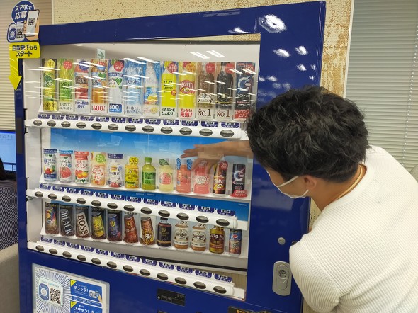 自販機オタクとも周囲に言われるほどの自販機大好き人間で、自販機を活用した新規事業の開発を担当しています。「社長のおごり自販機」という職場内の雑談を生み出す新サービスもここから誕生しました。思いついたアイデアやプログラムを、すぐに試作や検証するために自販機の制御基板やいろいろな実験用の自販機もデスクの背面に設置をしています。「え、この自販機すごい!」というお客さまからのコメントを頂戴することに情熱を燃やしつつ、今日も自販機をいじります。