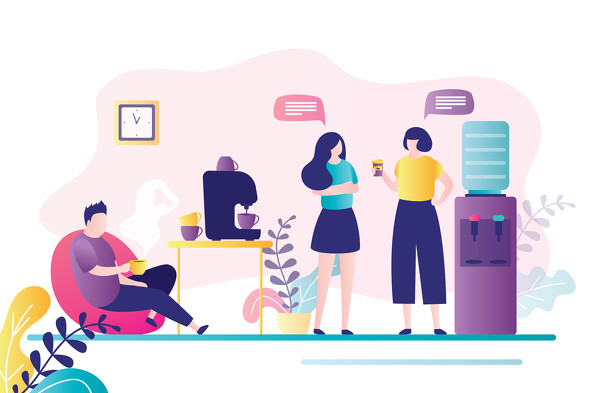 総務で行う社内コミュニケーション活性化の一丁目一番地は、オフィスの仕掛けである。フリーアドレスにしたり、コピーや文房具の棚を、あえて1カ所に配置するマグネットポイントを設置したり、リフレッシュルームにコーヒーサーバーを設置して、多くの従業員が訪れる場所にしたりと、従業員同士が不意に交わり、そこでコミュニケーションがなされる場所をつくっていく。