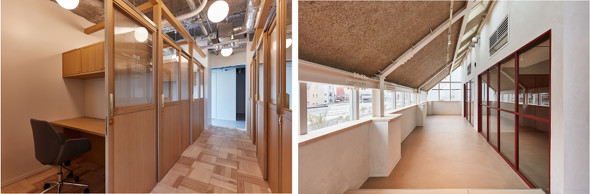 3、4階にはシェアオフィスが入る。会員は、3階ラウンジを利用できる月額ラウンジ会員(60人)と個人向け月額ブース(12ブース)、法人向け個室(5部屋)の3タイプを用意した。ラウンジエリア使い放題の個人向けプランは月額4万円。電源やWi-Fi、プリンターなども完備した。