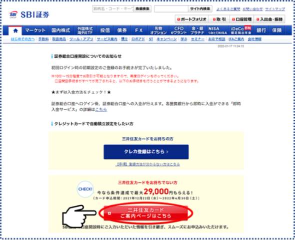 口座開設画面より、三井住友カード申込み画面へ(出所:リリース)