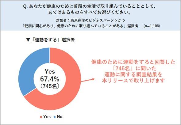 今回の調査は、健康に関心があり、健康のために取り組んでいることがあると答えた東京在住のビジネスパーソンを対象に、インターネットで行った。期間は、事前調査が2021年11月30日〜12月6日、本調査は21年12月6〜8日。有効回答数は、事前調査が1万561人、本調査が1106人。