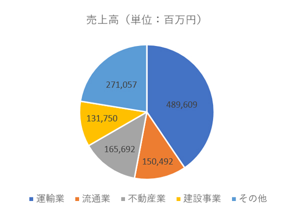 運輸業がセグメントとしては最も大きいものの、不動産業が存在感としては大きなものを見せている。また、流通業にも力が入っている。