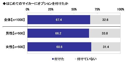 初めてのマイカーにオプションを付けた人は全体の67.4%だった。