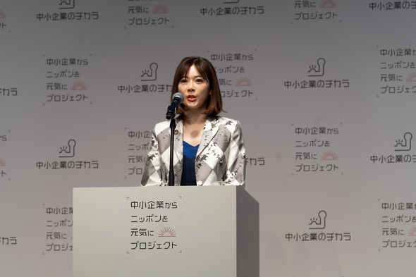 発表会では、経済アナリストの馬渕磨理子氏が中小企業の現状やSDGsについて解説した。馬渕氏は「中小企業が国内の99.7%、雇用者の7割を占めます。『資金不足・債務拡大』『人材不足・事業承継』『設備投資・DXの遅れ』が課題となっていて、これらの影響で倒産件数が増加しています」と問題点を語る。