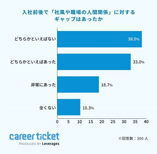 新入社員は、「社風や職場の人間関係」「給与や手当」に対するギャップよりも、「仕事内容」に対するギャップを強く抱いていることが見て取れる。