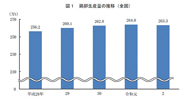 農林水産省のデータをみると、11年の鶏卵生産量は248万2628トンでその後も250万トン水準でじわじわ増え続けて17年についに260万トンを突破、20年には263万2882トンとなっている。もともと生産過剰だったところにこの9年でさらに15万トンも生産が増えているのだ。