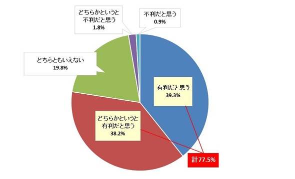 運動部学生は就職活動に有利かどうかの問いに、「有利だと思う」(39.3%)と「どちらかというと有利だと思う」(38.2%)合わせて7割以上が「有利だと思う」と答えた。
