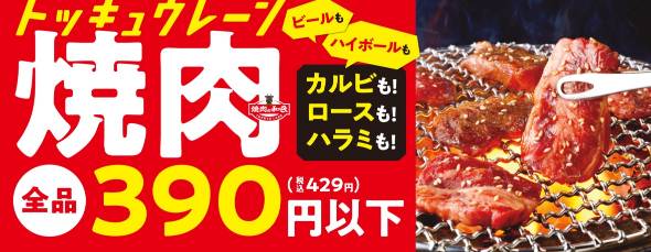 海外情勢の影響を受け原材料や資源価格は上昇し、世界的にインフレが発生している。そこでワタミは、「値上げが続く世の中、ワタミは挑戦します。ロース、カルビ、ハラミ、量変えずオール390円(税込429円)」というキャッチコピーのもと、ハラミなどの人気商品の重量はそのままで値下げを実施する。