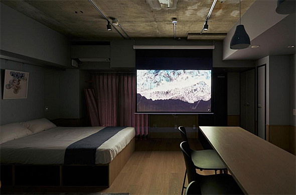 例えば、80インチの大型プロジェクターを設置していて、ホームシアターを楽しめるようになっていたり、机と椅子のほかにミーティング用のテーブルを設置していて、ちょっとしたオフィスとして使えるようになっていたり。キッチンや洗濯機などが設置されているので、もちろんそこで暮らすことができる。一方で、外泊して、他人に部屋を貸したときには、運営スタッフが清掃してくれるので、ホテルに戻ってきたような感覚も味わうことができるのだ。