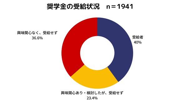 奨学金サイト「ガクシー」を運営するSCHOL(東京都千代田区)は、全国の大学生と、その保護者を対象に、「2022年奨学金における実態調査」を実施した。その結果、奨学金を受給した(したことがある)層は全体の40.0%(777人)だった。