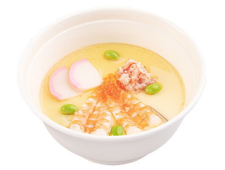 おいしさの秘けつは店内仕込みならではの蒸し器の温度調節と、蒸し時間にあった。滑らかな舌触りとだしの効いた味わいに、鶏肉・海老・しいたけ・カマボコ・枝豆と具だくさんで食べ応えのあるように仕上げている。