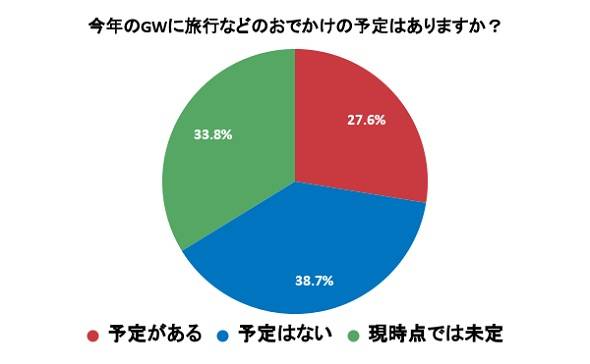今年のGWの予定を聞いたところ、「予定がある」と答えた人は27.6%で、昨年より微増した。今年はスポーツ観戦やイベントへの参加などの回答があり、イベント開催や人数制限が解除された影響もあるようだ。
