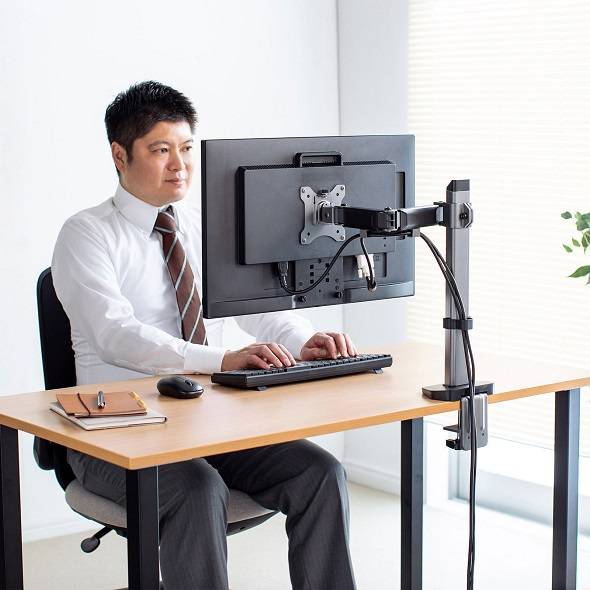 最大27型、9キロまでの液晶ディスプレイに対応していて、VESA規格(75×75ミリ、100×100ミリ)に準拠した液晶ディスプレイの取り付けを可能とした。