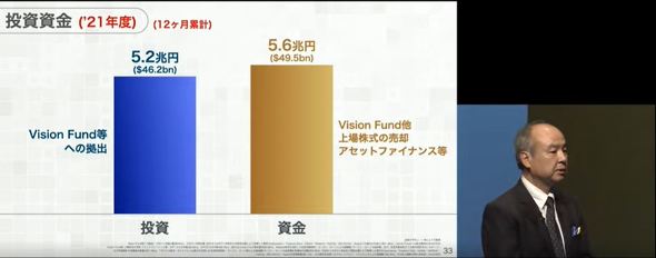 LTVの改善方法について、孫会長兼社長は「投資を行っていないわけではありません」と説明。ただし、保持していた資産の売却金額(21年度で5.6兆円)が、投資資金(5.2兆円)を上回るように運用した。
