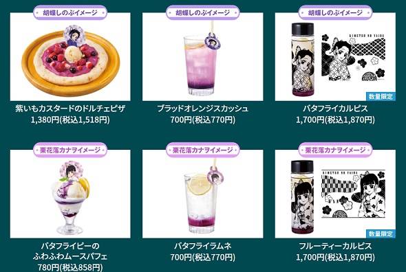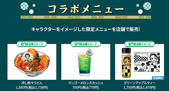 レストランではコラボメニューを全27種、販売する。フード・ドリンクの他、数量限定でクリアボトルに入ったドリンクボトルメニューも用意した。さらに購入者には両面とも背景がつながるデザインのコラボ限定オリジナルコースターを配布するという。