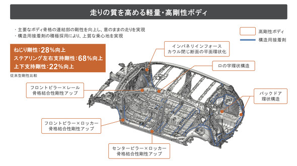 そして車体中央からルーフパネルを支えるBピラー(センターピラーとも呼ばれる)は、車体全体の剛性を高めるだけでなく、側面衝突時には衝撃を受け止め、乗員を守る役割がある。